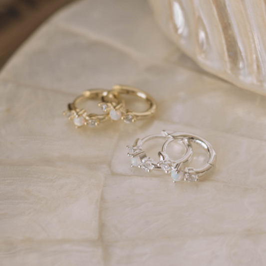 Sold outWhite Opal Hoops