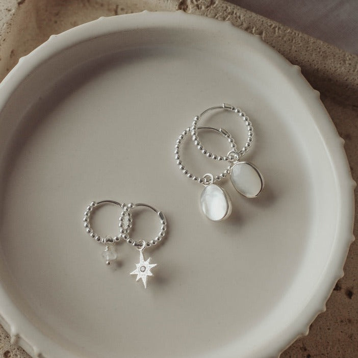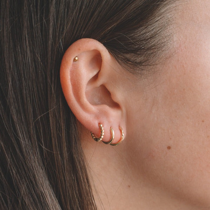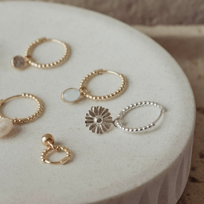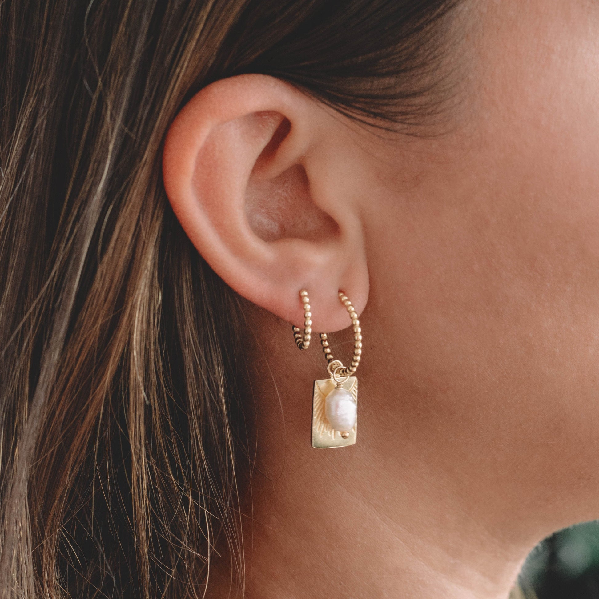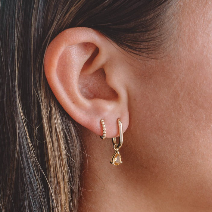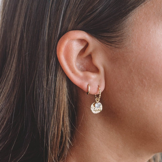 The first step to create your own personalized earrings. This is one of our multiple pairs of hoops you can choose from in order to mix and match charms or even layer multiple ones to show off YOUR style.