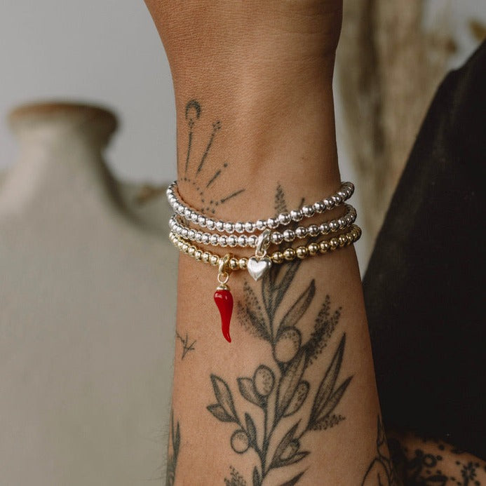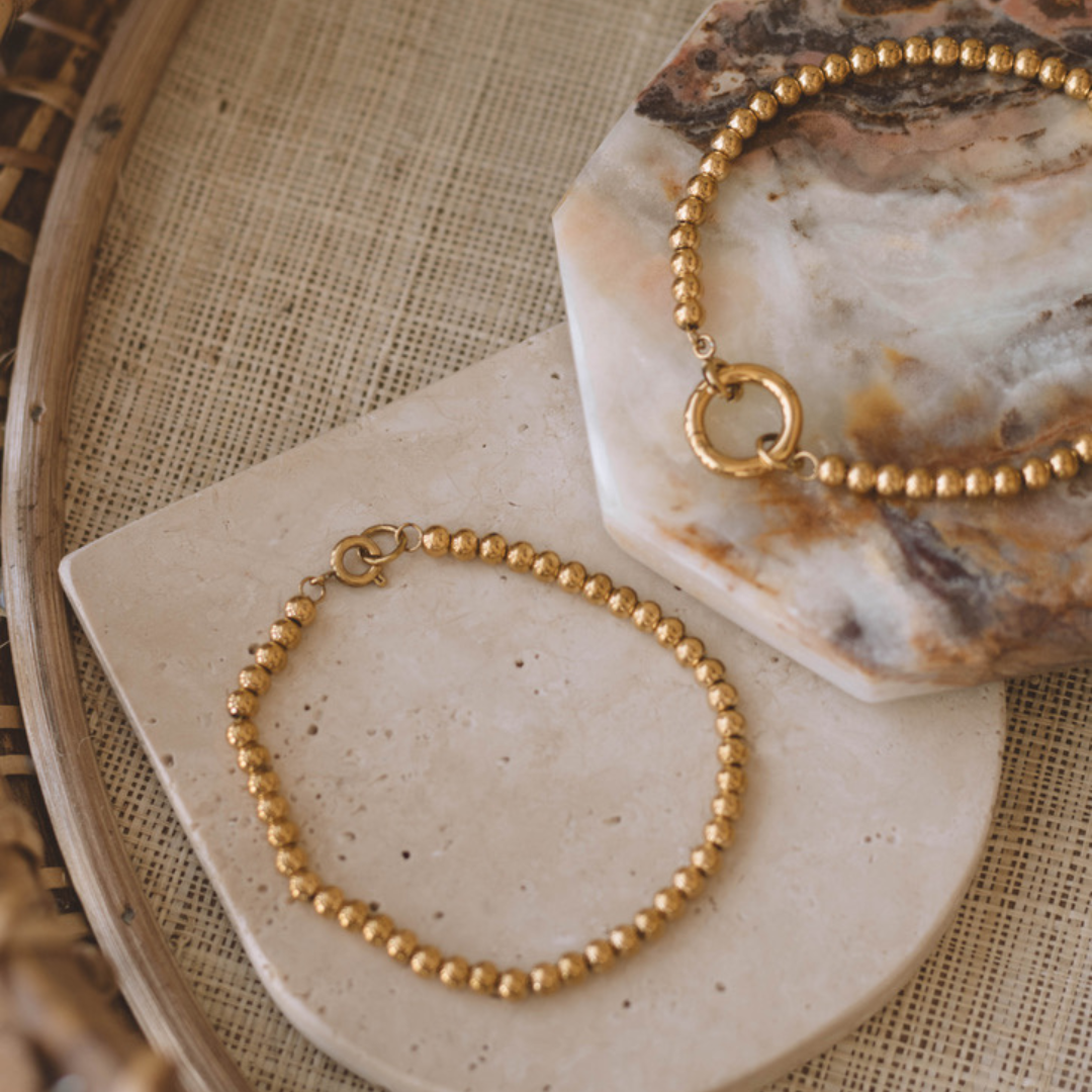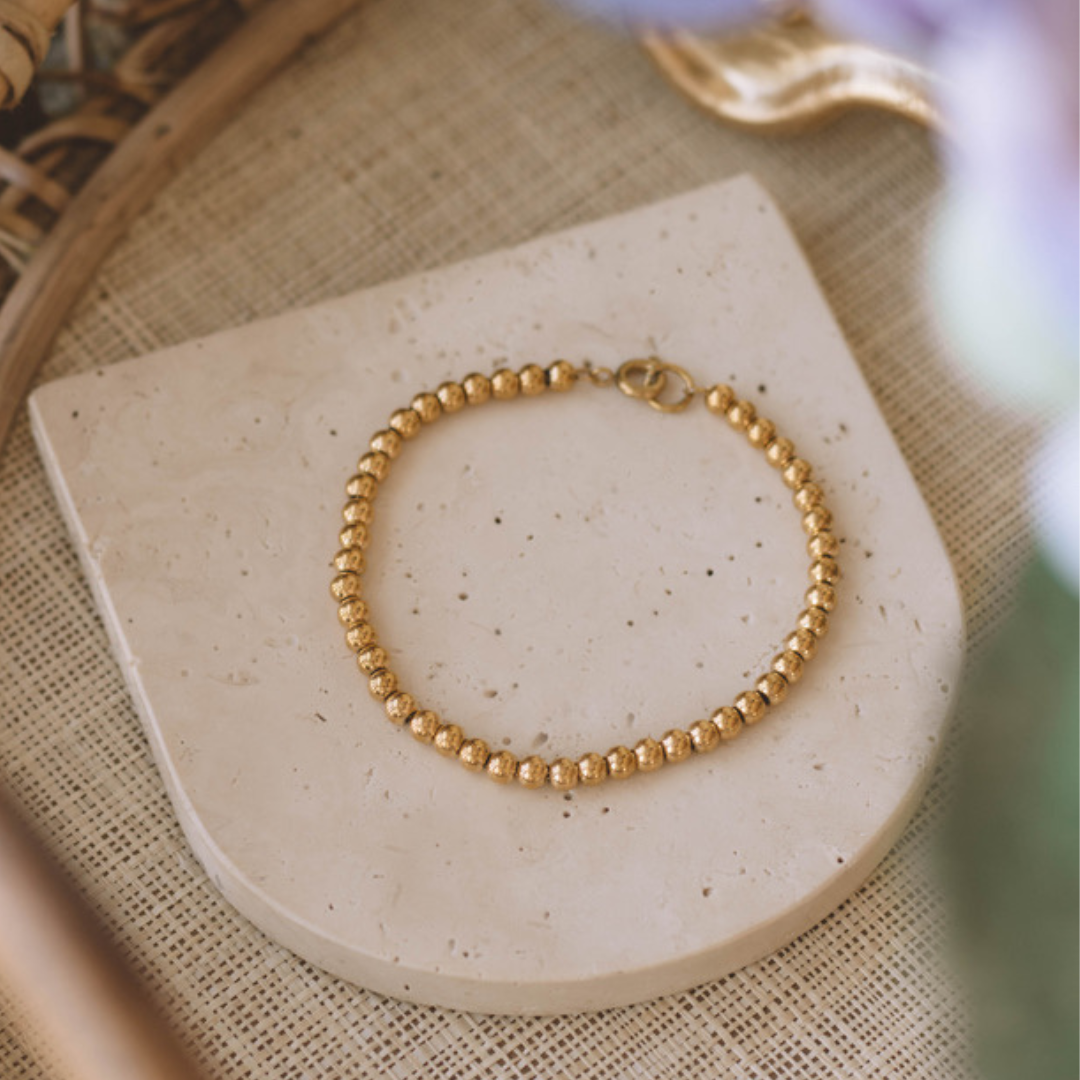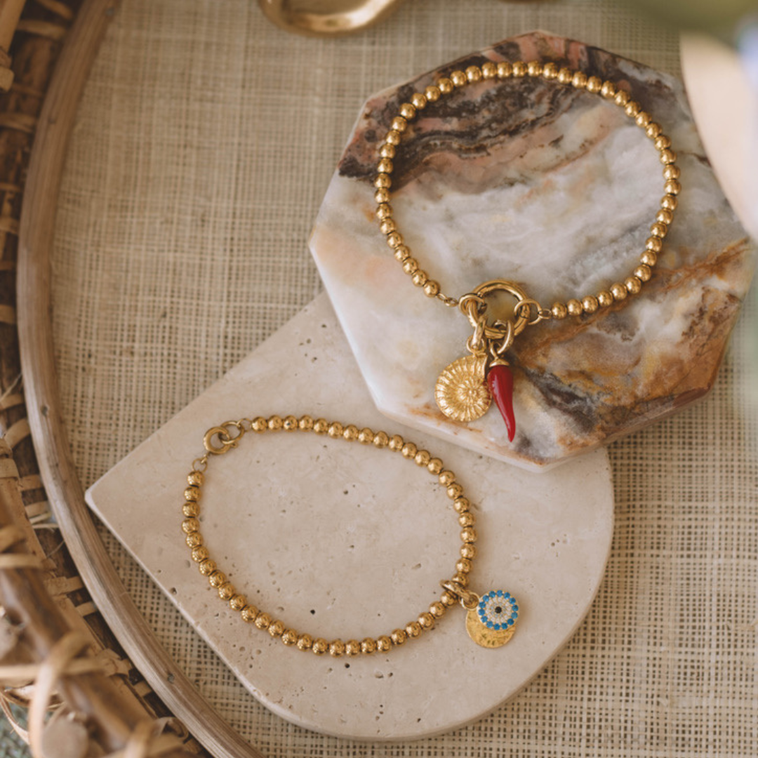 The perfect base to create the charm bracelet of your dreams. It just stands out enough with the shiny beads, but it will go with everything.