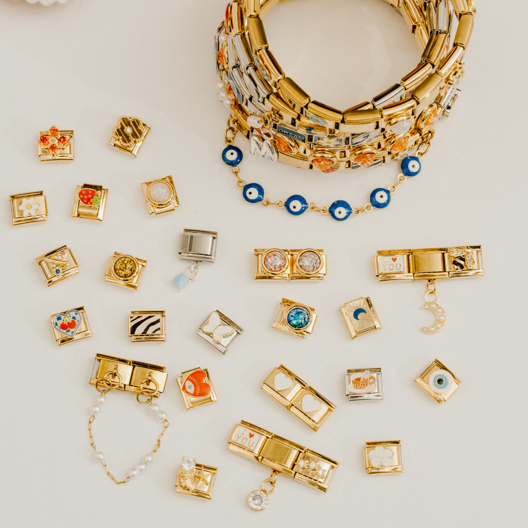Step 2: Choose your charm links and assemble your bracelet. Add or remove links as you wish to create a bracelet that fits you perfectly. Please note that we will not assemble your bracelet for you; we leave it up to you to create your own as you wish.