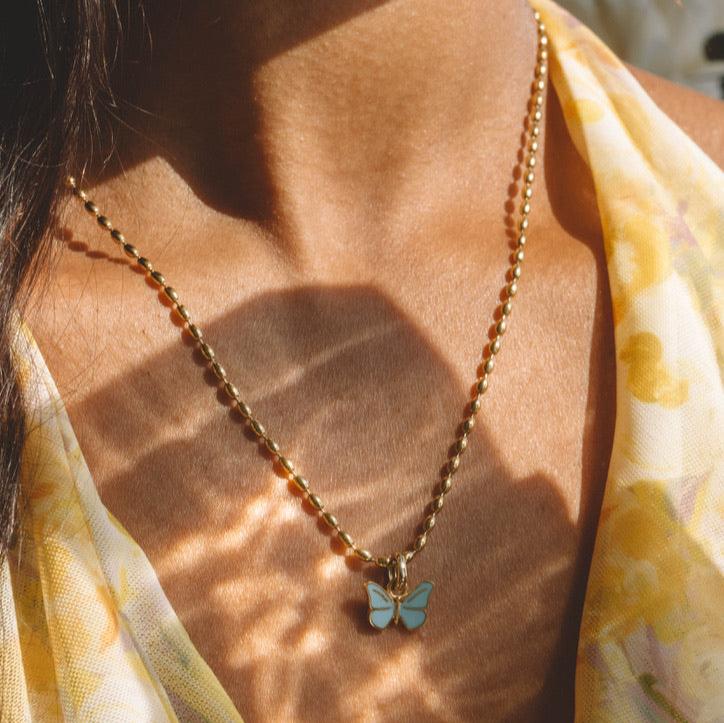 The butterfly, symbol of lightness and transformation, evokes a sense of evolution and renewal with every flap of its wings. Its cyan blue adds vibrant energy.