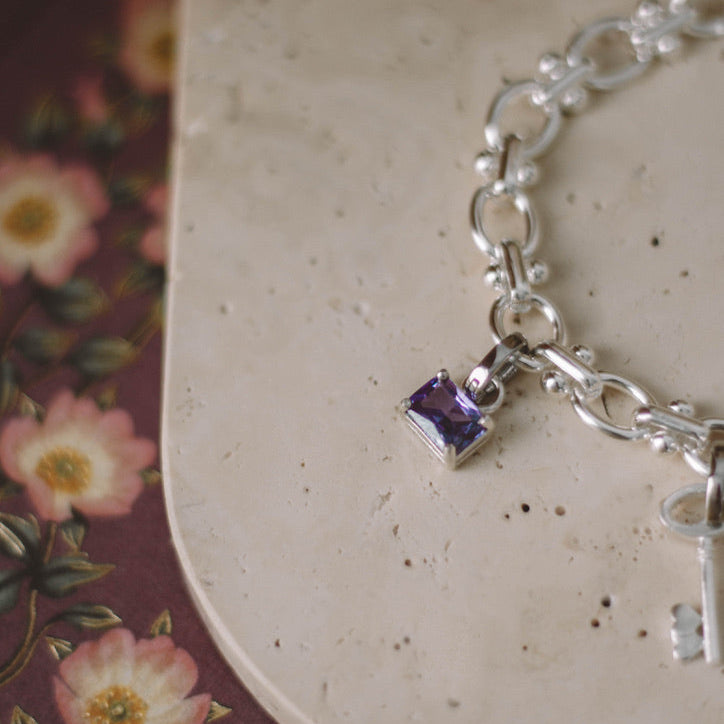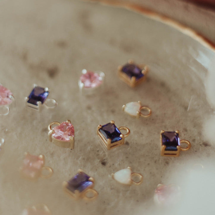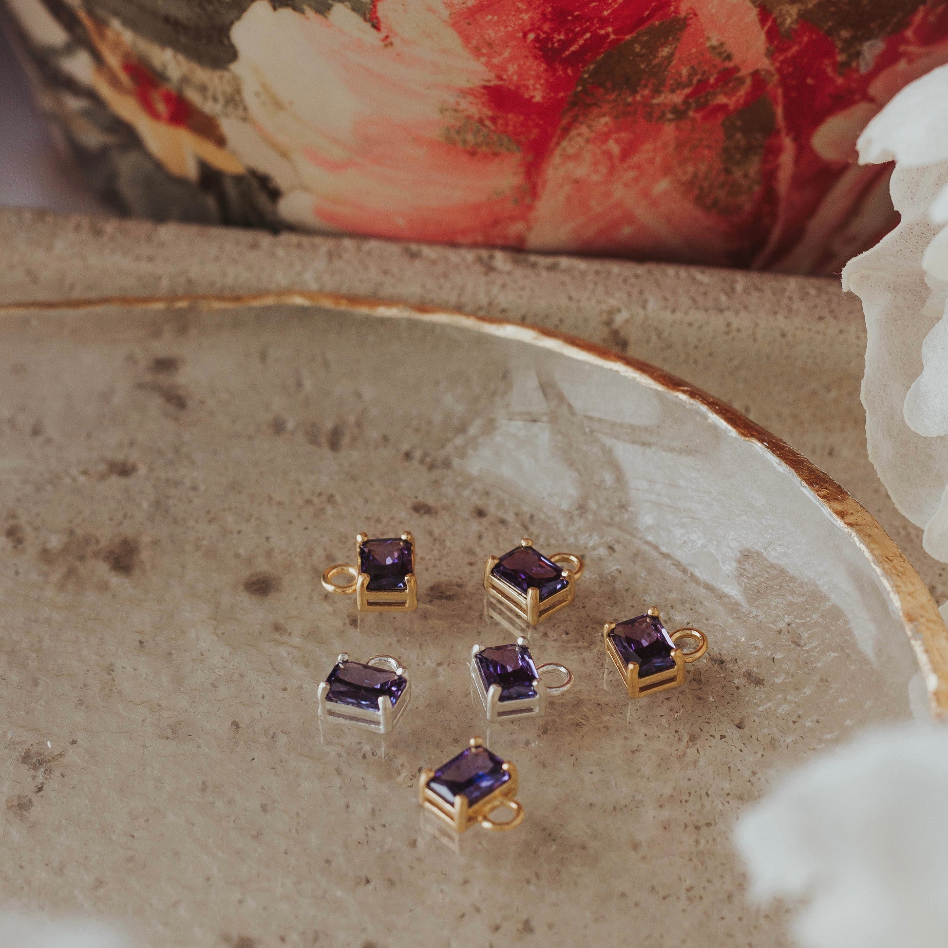 Step 2: Be careful, each charm is sold individually, and not as a pair, in order to mix and personalize your earrings!Step 3: Don't forget to add to your cart the necessary quantity of the Necklace and Bracelet Charm Adapter if you want to attach your charms to your other jewelry!Here is a beautiful rectangular purple zirconia that will add a soft and dainty touch to your looks.- Dimensions: 5mm x 7mm