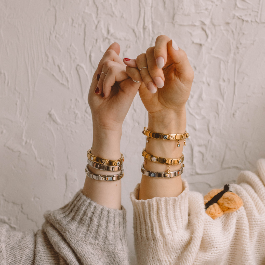 Étape 1: Procurez-vous le Bracelet de base, qui compte 18 mailles vierges. Partez de cette base pour créer un bijou qui vous ressemble, entièrement personnalisé selon votre style, votre humeur ou vos plus beaux souvenirs.