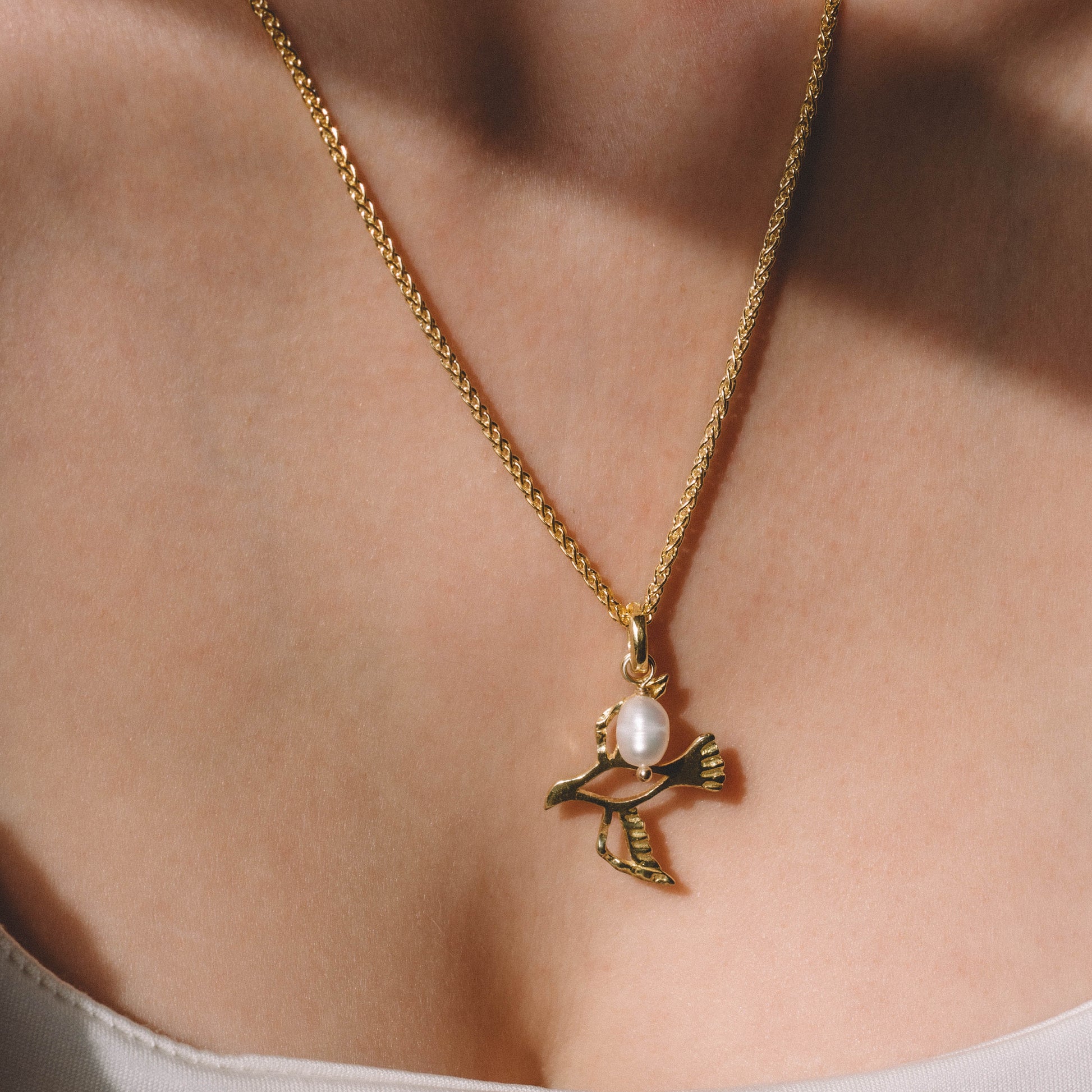 Un belle colombe dont la silhouette est finement découpée. Synonyme de paix et d'espoir, c'est un magnifique symbole à porter.