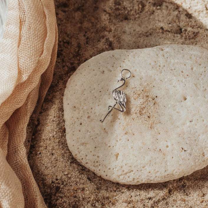 Comment ne pas être en amour avec le flamant rose! Vous adorerez cette breloque à la forme et au design unique, qui ne peut que bien compléter vos looks estivaux. Agencez-le avec la breloque Monstera, ou une jolie pierre, comme le lapis lazuli.