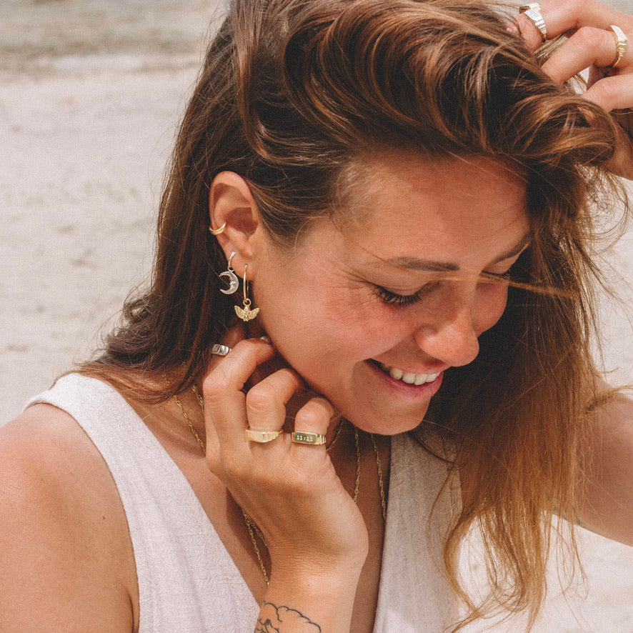 Or massif 14k: aucune oxydation et décoloration, vous pouvez porter vos bijoux à chaque jour, en tout temps et toute activité.