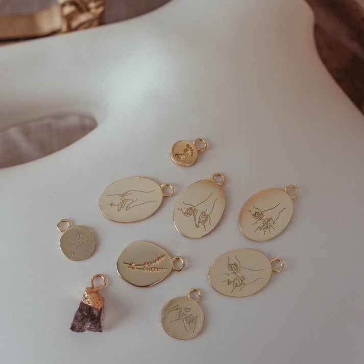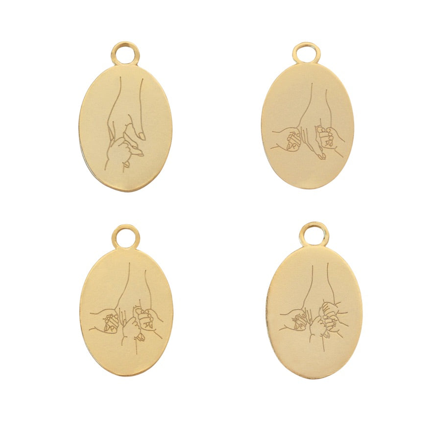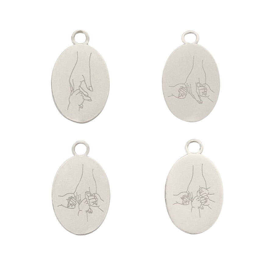 Main dans la main est une breloque puissante qui représente un accompagnement marquant dans votre vie. Pour cette personne qui a tenu votre main ou vous, la sienne, merci.