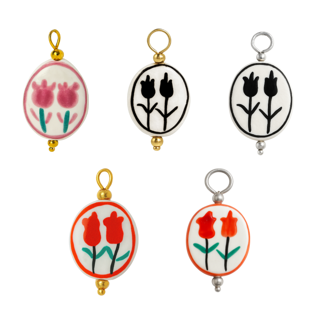 Une jolie breloque avec une tulipe dessinée à la main, elle fait très vintage!